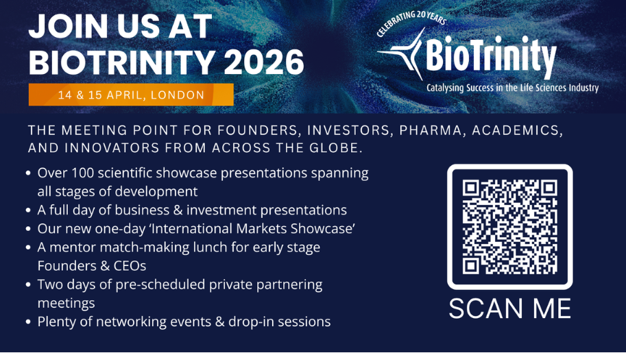 BioTrinity is attended by an ever-evolving international audience of c.850 delegates, comprising a mix of academic entrepreneurs, early stage and emerging life sciences R&D companies, funders & investors, big pharma teams, charities & research bodies, government, regulatory bodies, along with professional services and expert supporters to the industry.